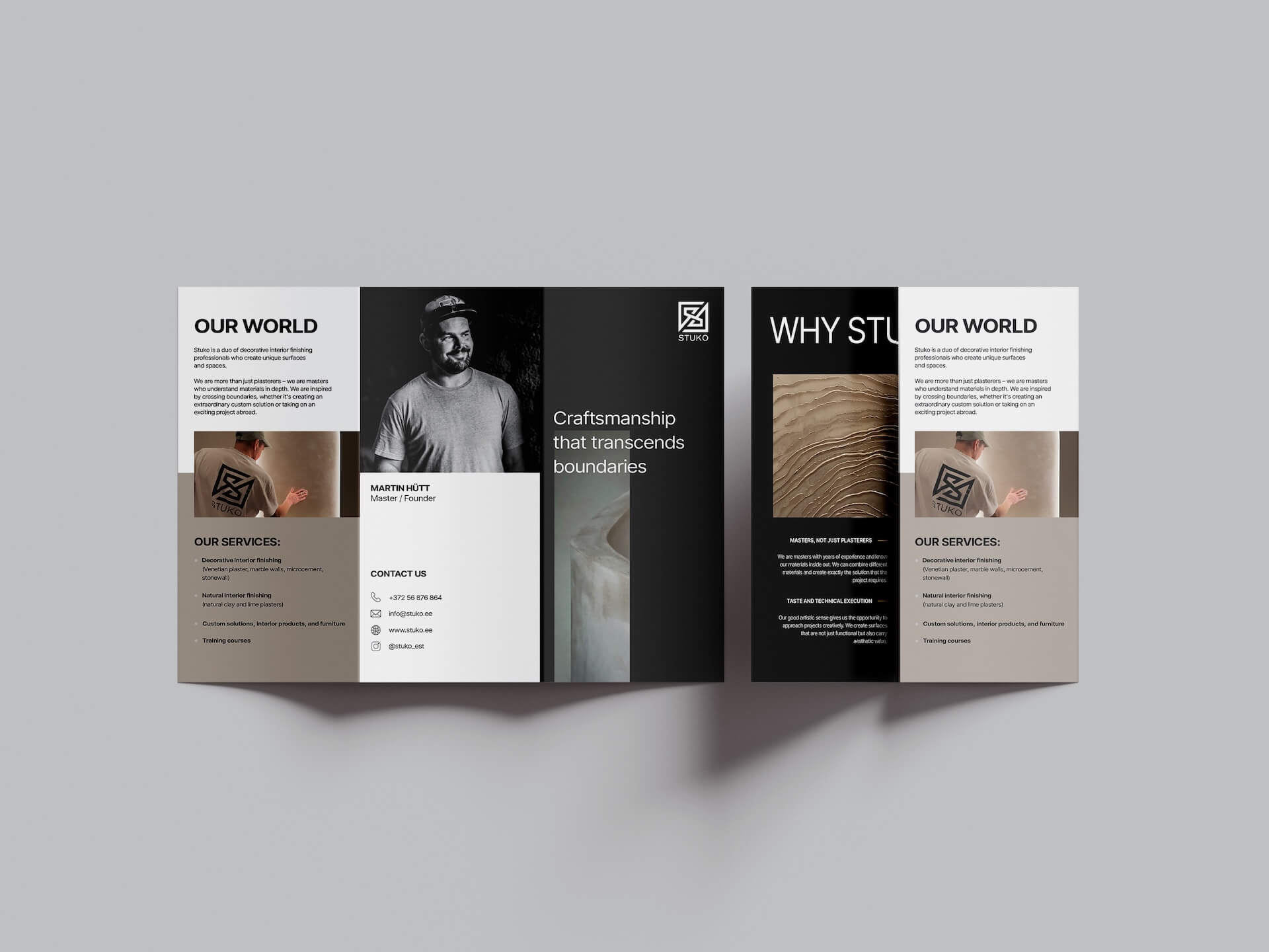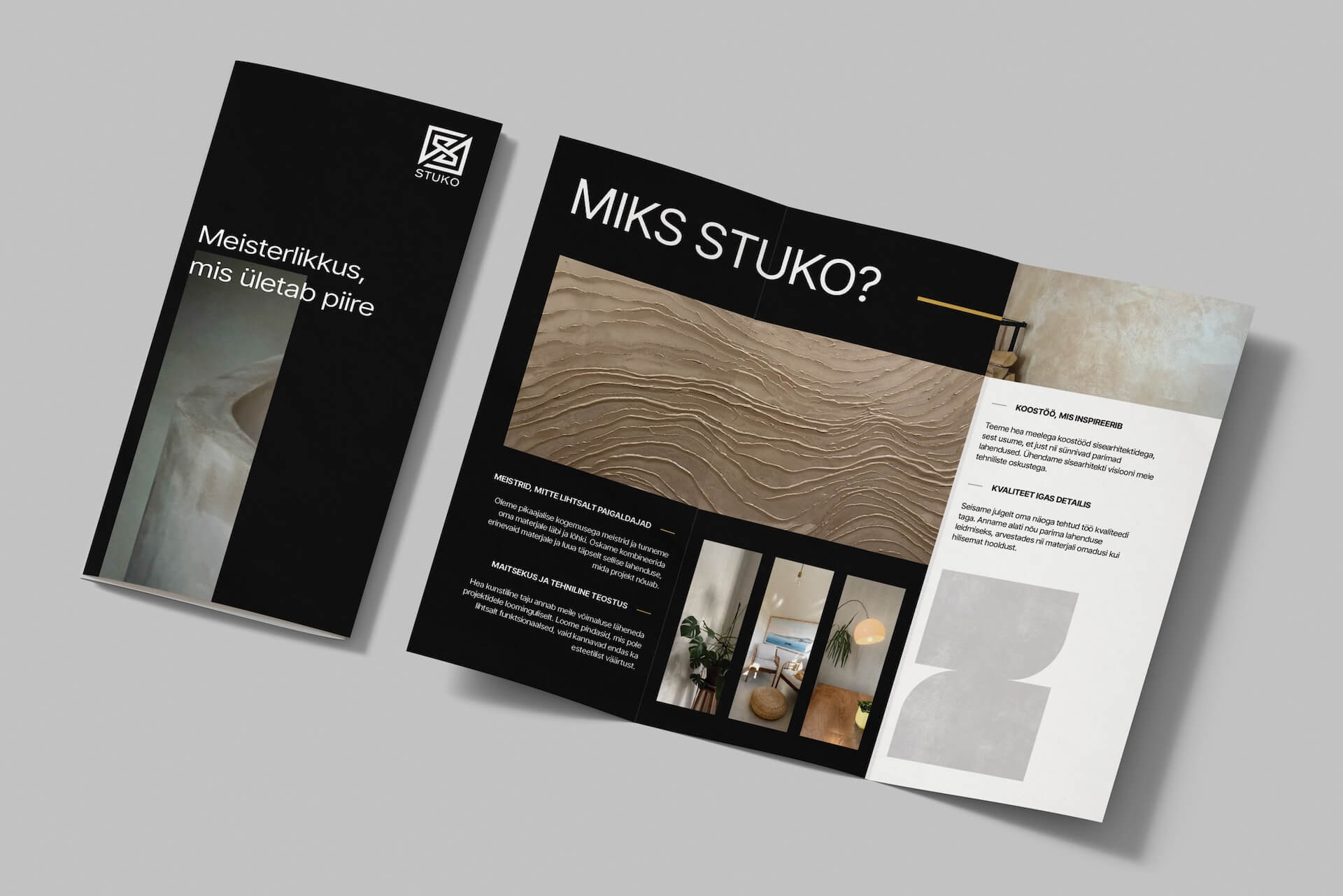 Stuko Lähteülesandeks oli luua dekoratiivset siseviimistlust pakkuvale ettevõttele Stuko visuaalne identiteet, mis eristuks selgelt konkurentidest ja positsioneeriks neid meistritena, mitte lihtsalt paigaldajatena. Lisaks tegime Stukole ajutise onepager kodulehe. Projekti- ja loovjuhtimine: Kristel Onno Graafiline disain: Kairit Onno Klient Stuko OÜ Kuupäev aprill 2025 Kategooria Bränding Koduleht